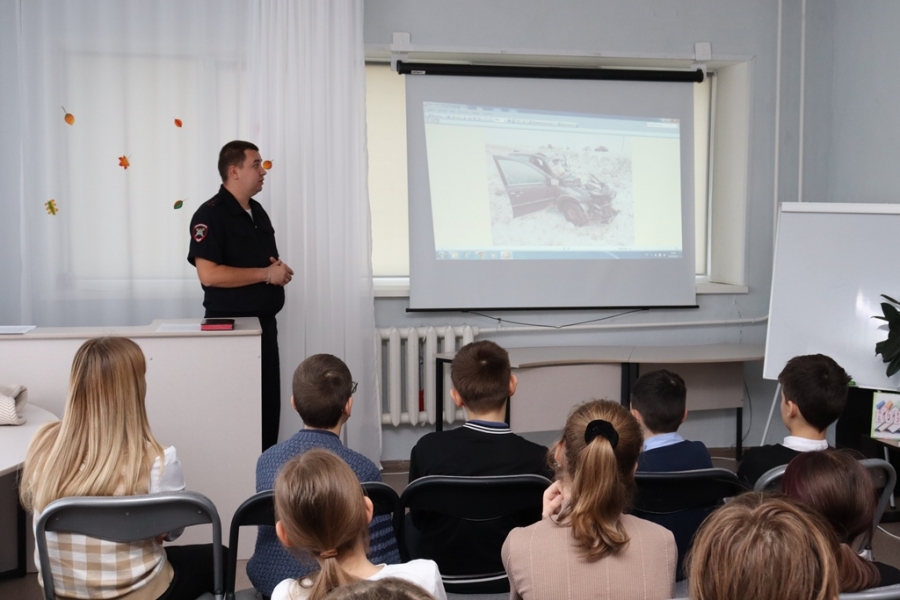 В рамках акции «Осенние каникулы» Максим Черниюк провел для пятиклассников Чесменской средней школы им. Героя Советского Союза Волошина краш-курс, направленный на формирование негативного отношения к несоблюдению правил дорожного движения.