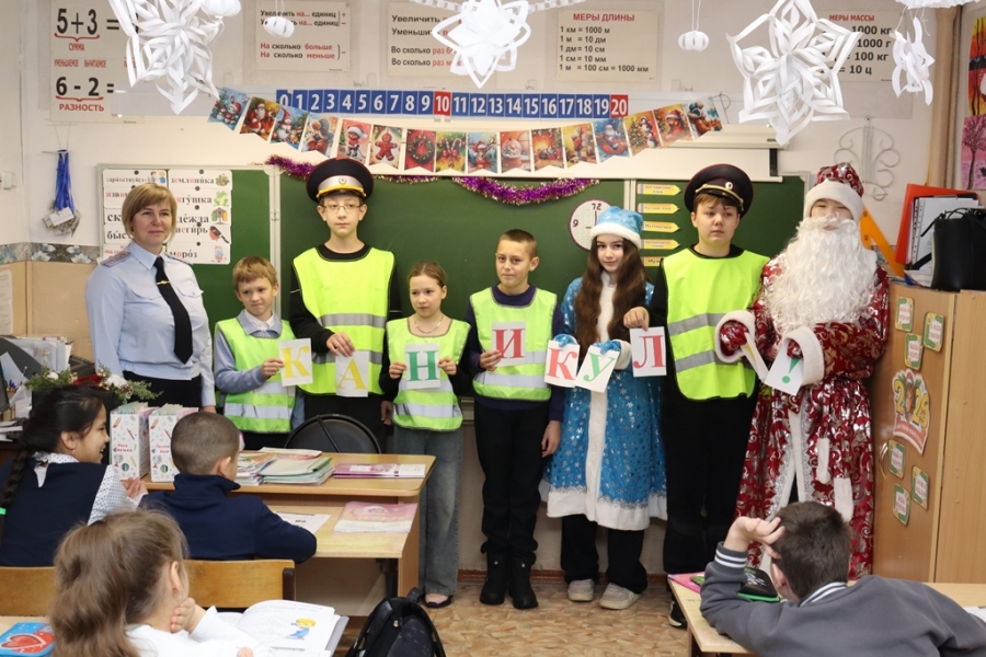 Так, инспектор по исполнению административного законодательства Госавтоинспекции капитан полиции Татьяна Безматерных совместно с юными инспекторами дорожного движения провела встречи с учащимися начальных классов Чесменской средней школы им. Гаврилова.